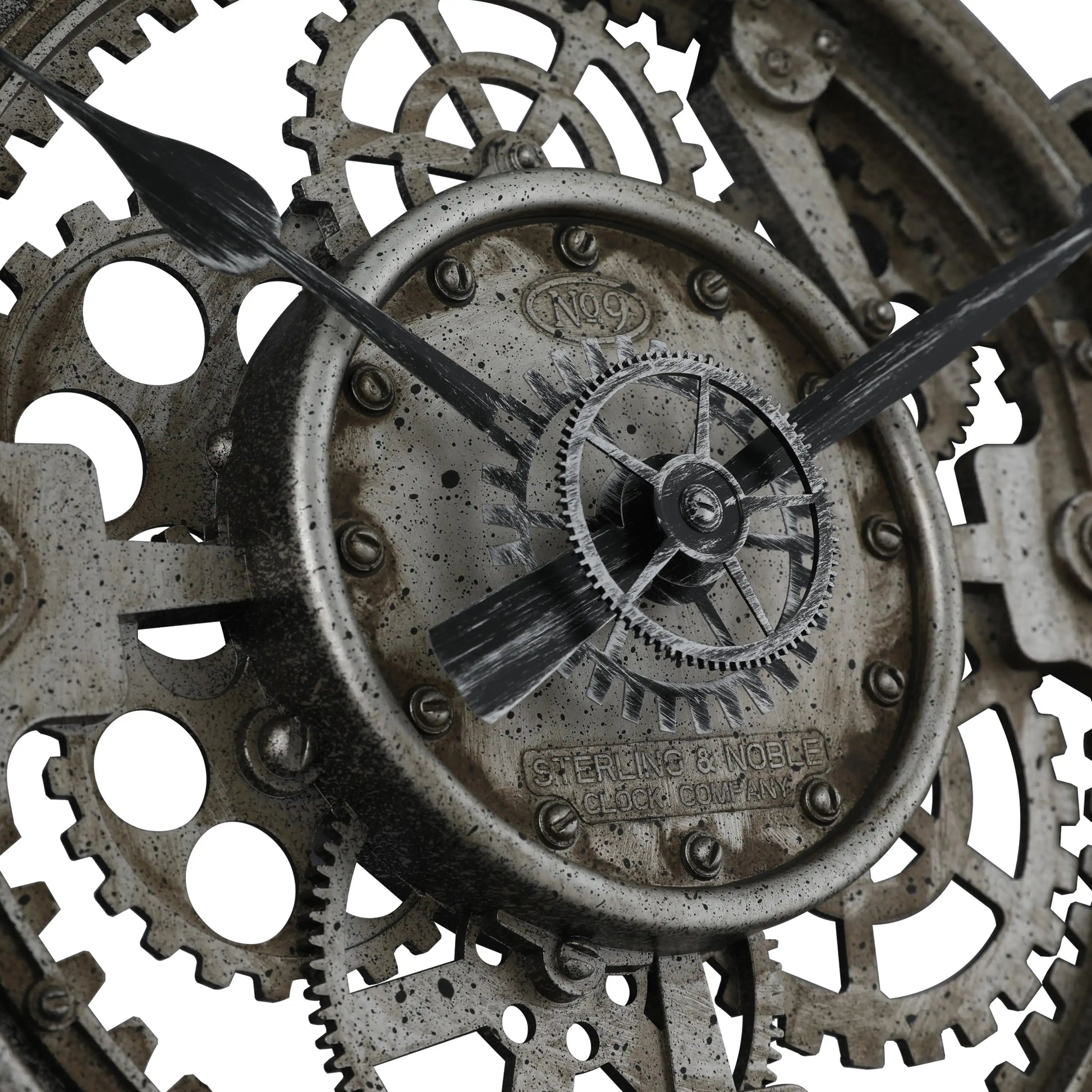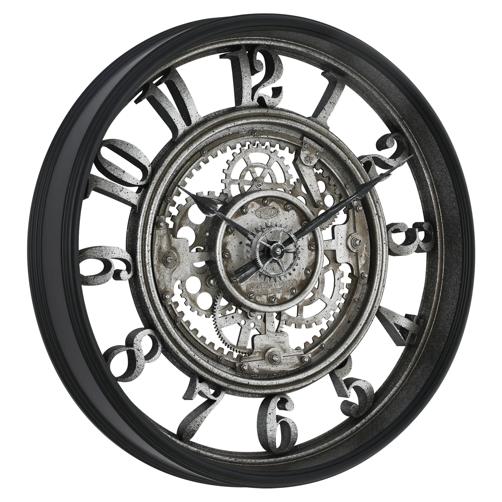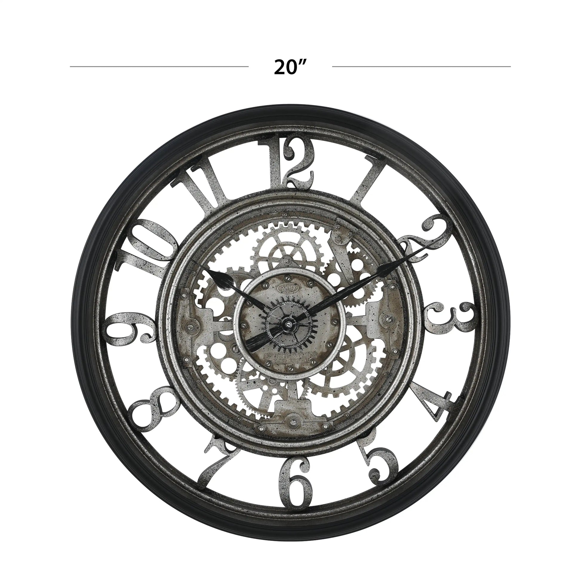 20" Indoor Rustic Metal Arabic Moving Gear Analog Wall Clock
