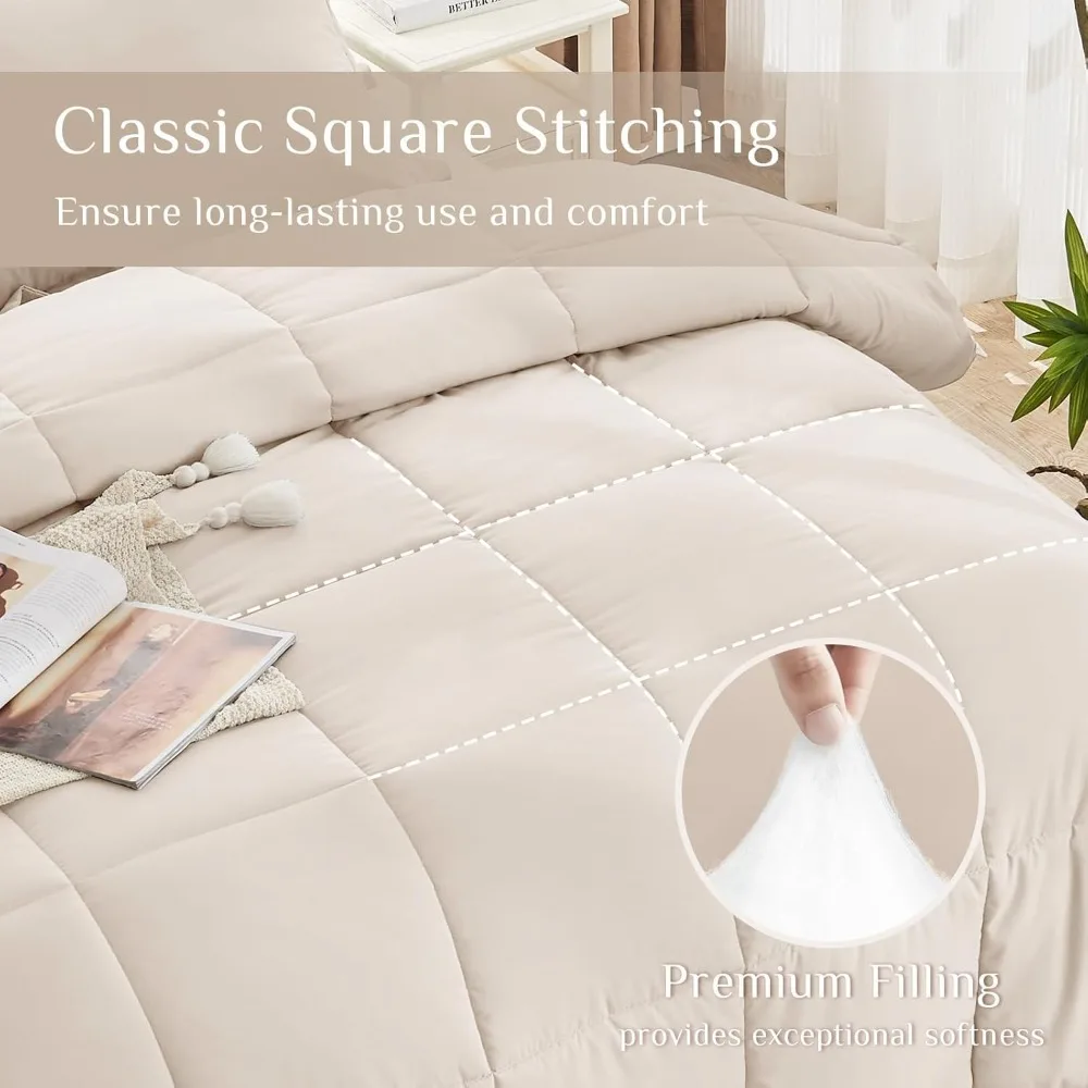 - Robust Queen Bed Set: Engineered with grid quilting to lock fluffy filling in place, this comforter set queen size maintains thickness even after repeated washing, and the stitching prevents shifting, ensuring the longevity of your comforters queen size