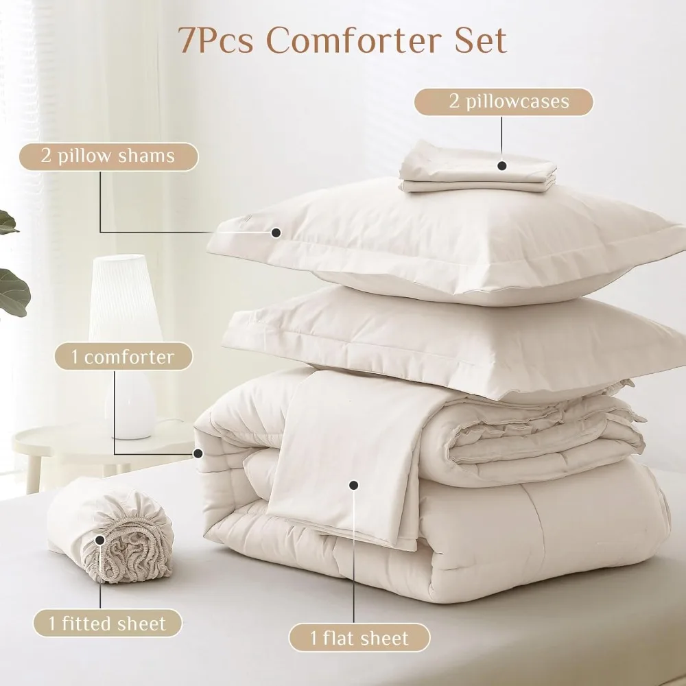 - Bed in a Bag: Queen comforter set 7 pieces includes 1 comforter (88" x 88"), 1 flat sheet (90" x 102"), 1 fitted sheet (60" x 80") +14" deep, 2 pillowcases (20" x 30"), and 2 pillow shams (20" x 26"), providing everything you need for a cozy bed