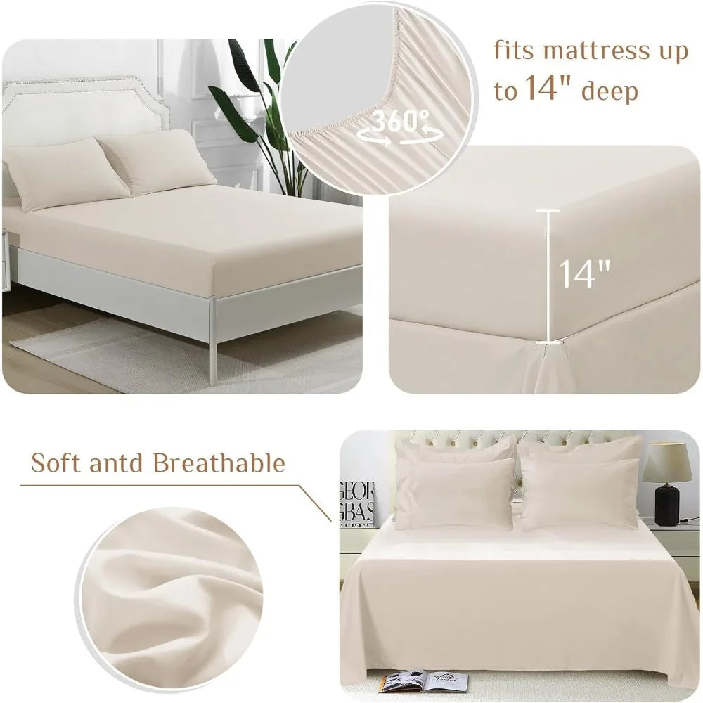 - Practical Design: Deep pocket elastic fitted sheet stays securely anchored on 10-14" mattresses, even with restless sleepers who toss and turn, while the envelope pillowcase keeps the pillow in place and make it easy to change
