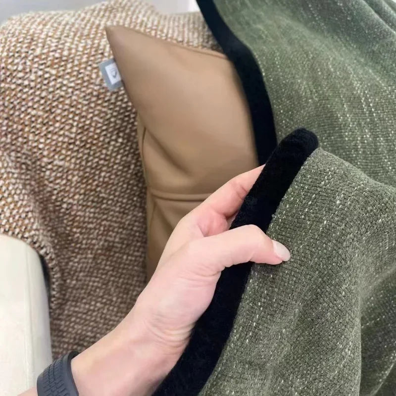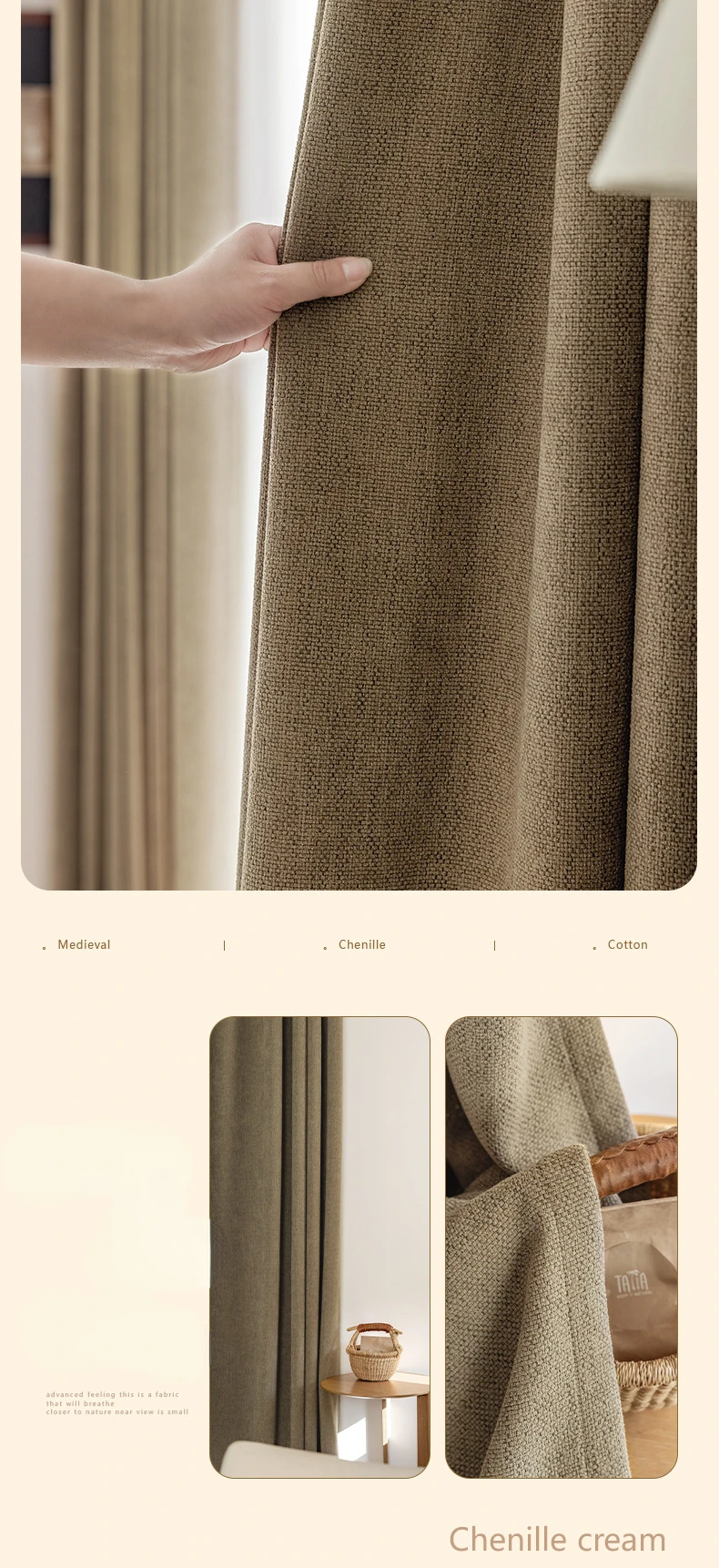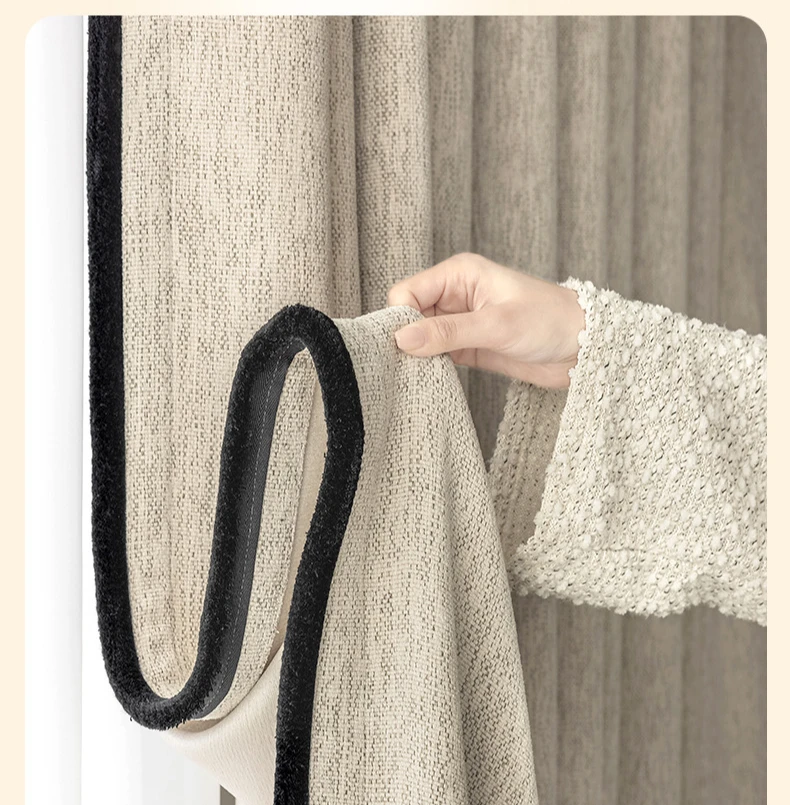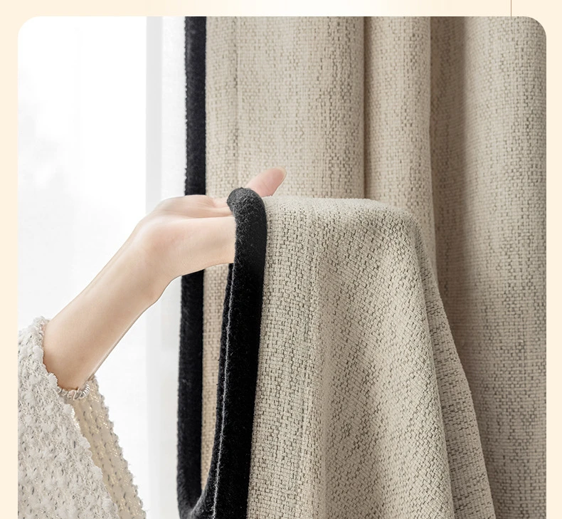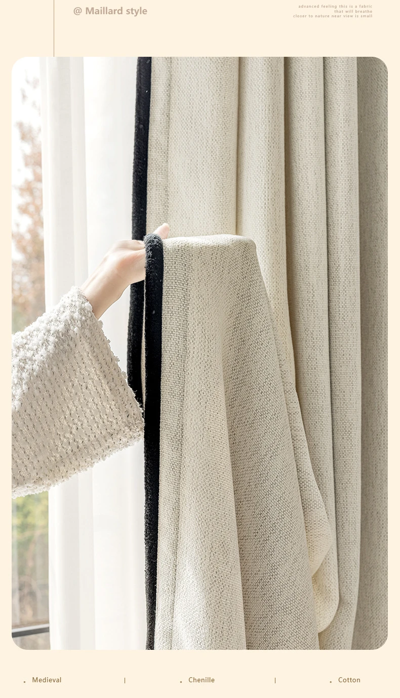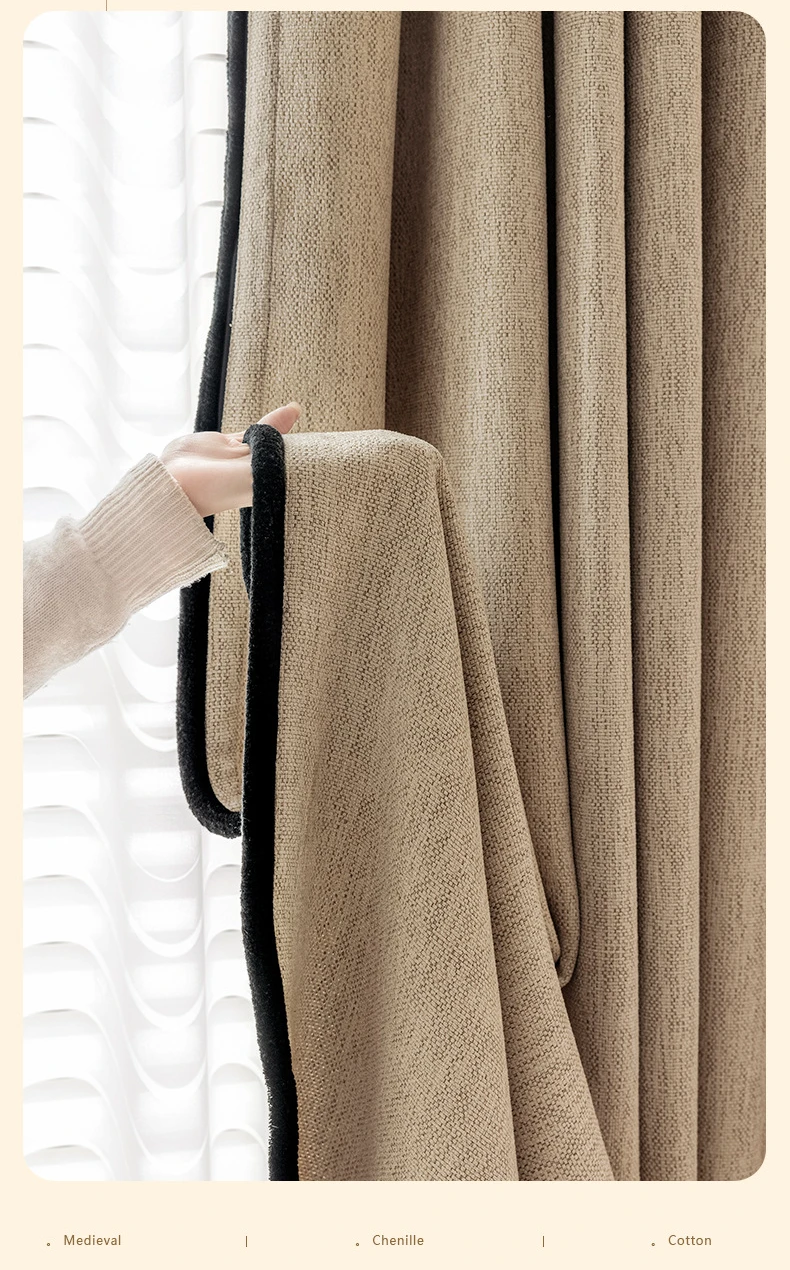 Light French Black Edge Chenille Cotton and Linen Feel Thickened Cream Color for The Living Room Curtain Medieval Style Curtains