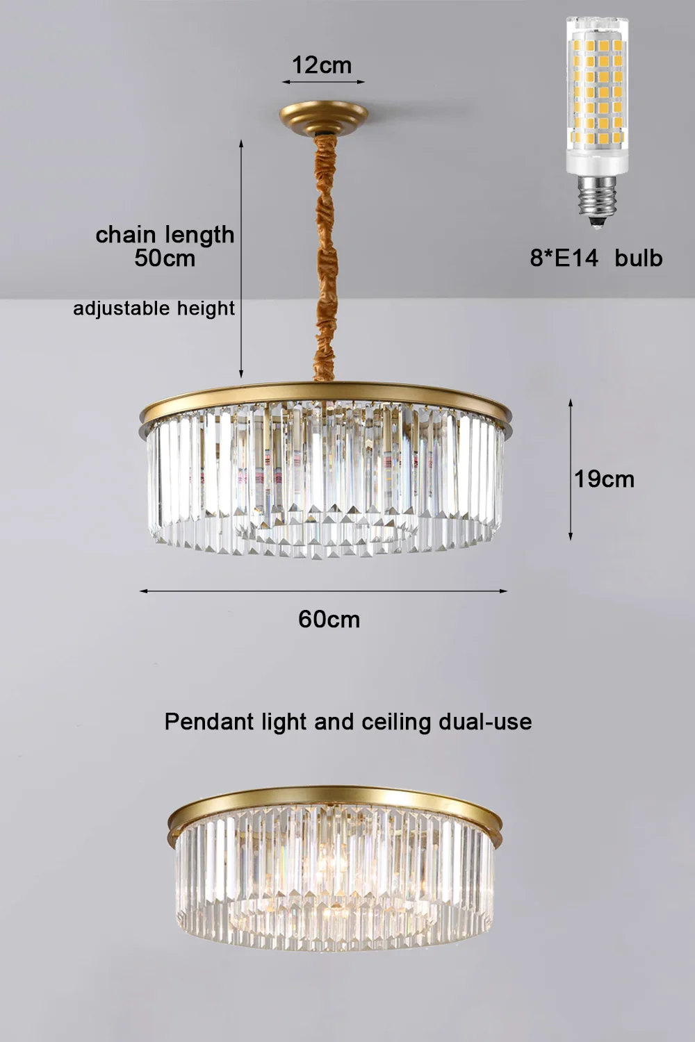 Luxury American Retro Ceiling Crystal Pendant Lights Living Dining Room Lighting Decor Chandelier Indoor Hanging Lights Fixture