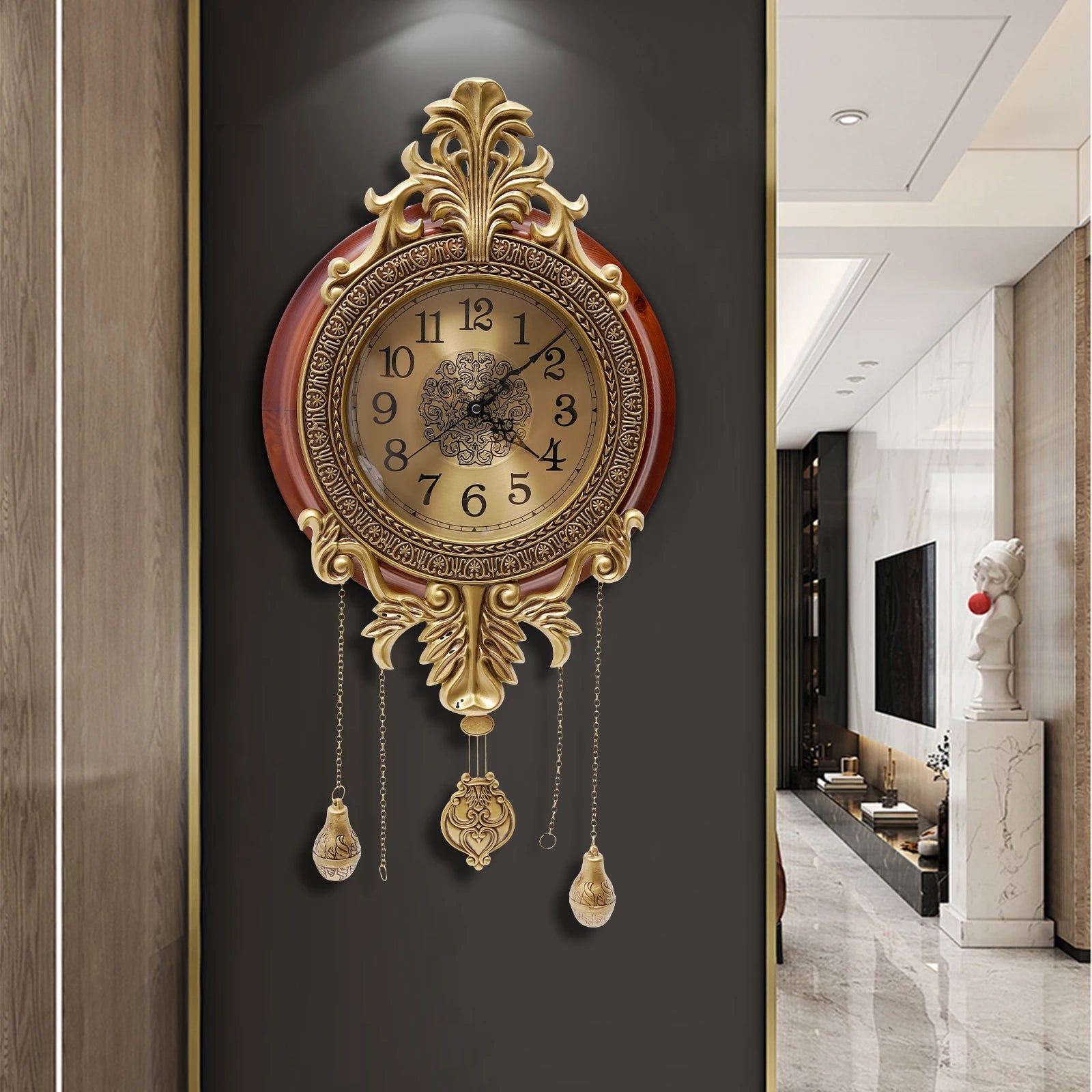 Retro Wall Clock, Silent Wall Clock with Swinging Pendulum, Battery Operated Pendulum Clock, for Bedroom Living Room 13.8*29Inch